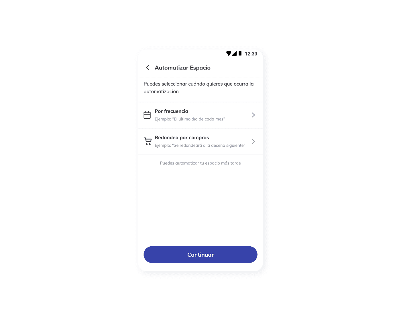 In this case, the challenge was to propose a new design for the space automation settings. This automation is divided into two sections: by frequency (date) or by purchase rounding.