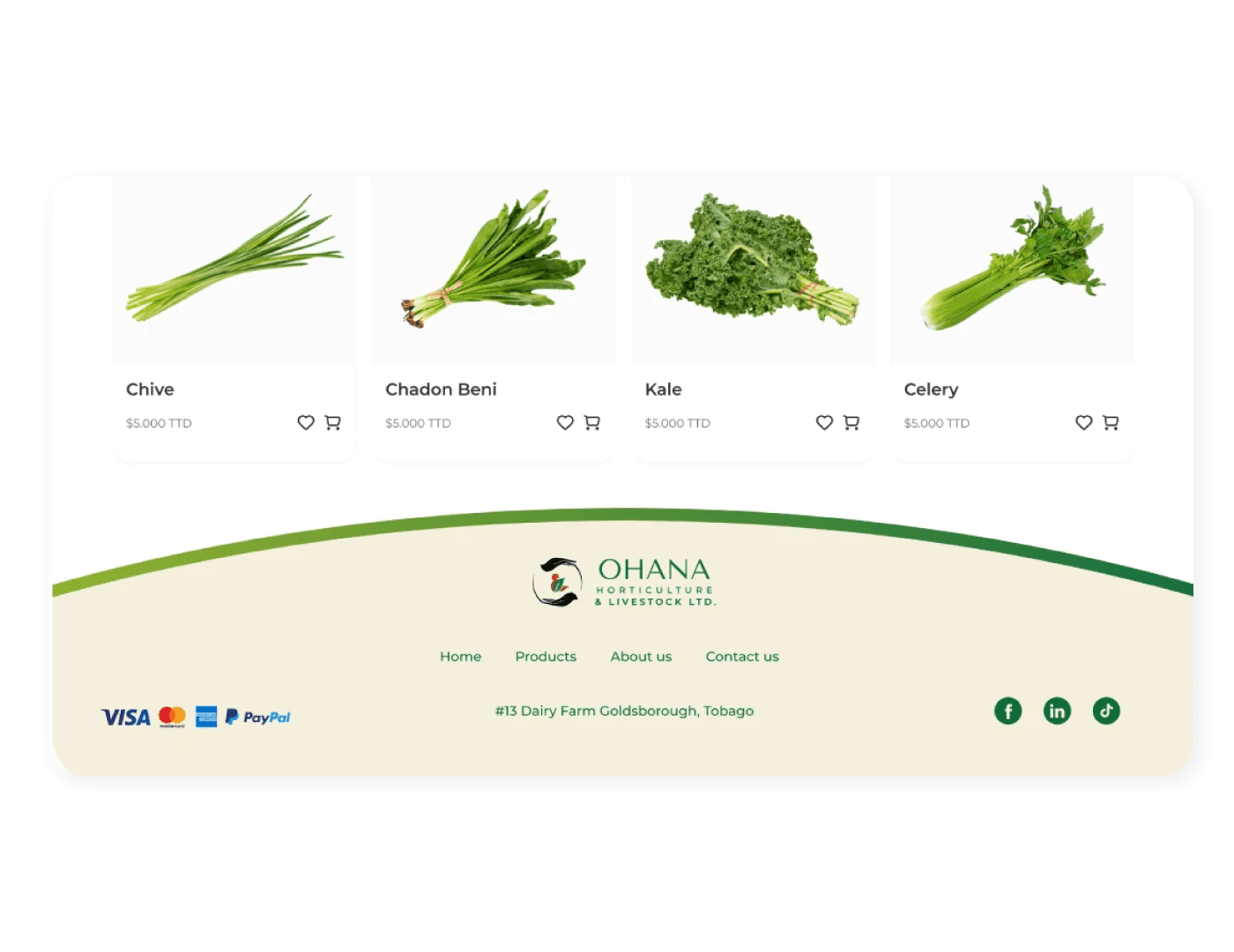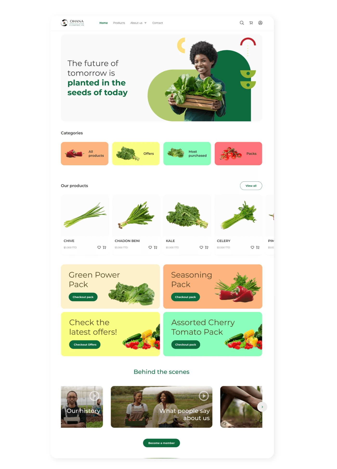 Ohana Horticulture & Livestock is an electronic commerce platform located in Trinidad and Tobago (a Caribbean country) where users can make purchases of food productos, such as celery, paprika, spinach, among other. For this project, the entire purchase flow was thought of from registration to the final purchase phase.
